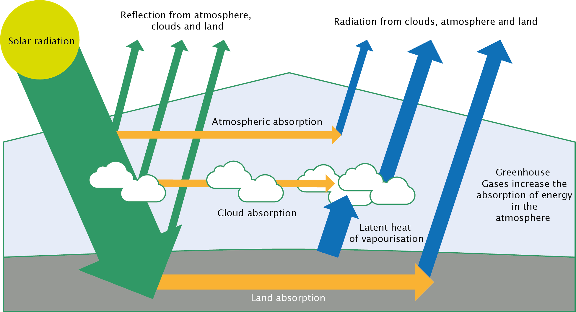 Human activities since the industrial revolution have resulted in significant volumes of greenhouse gases, such as carbon dioxide, being released to the atmosphere. This comes from the use of fossil fuels in energy generation (across electricity, transport and heating), land use change such as deforestation and the disposal and decomposition of waste. Greenhouse gases result in an enhanced greenhouse effect, where more of the sun's energy is absorbed by our atmosphere, causing warming.